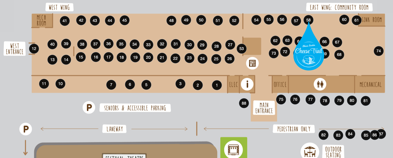 Annapolis Fine Cheese can be found at booth #58 at the Wolfville Farmers' Market. Click here to view the interactive map.
